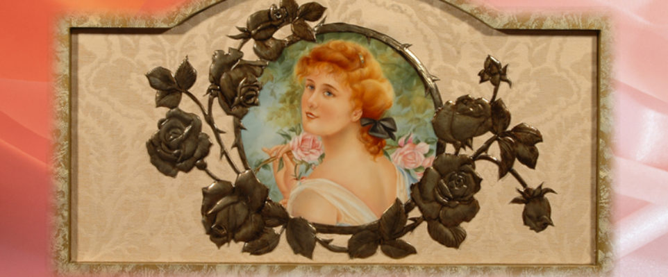 美人画やヨーロピアンフラワー、自宅のバラを題材にした磁器上絵付を行っています。オリジナル作品制作、レッスン等も承ります。