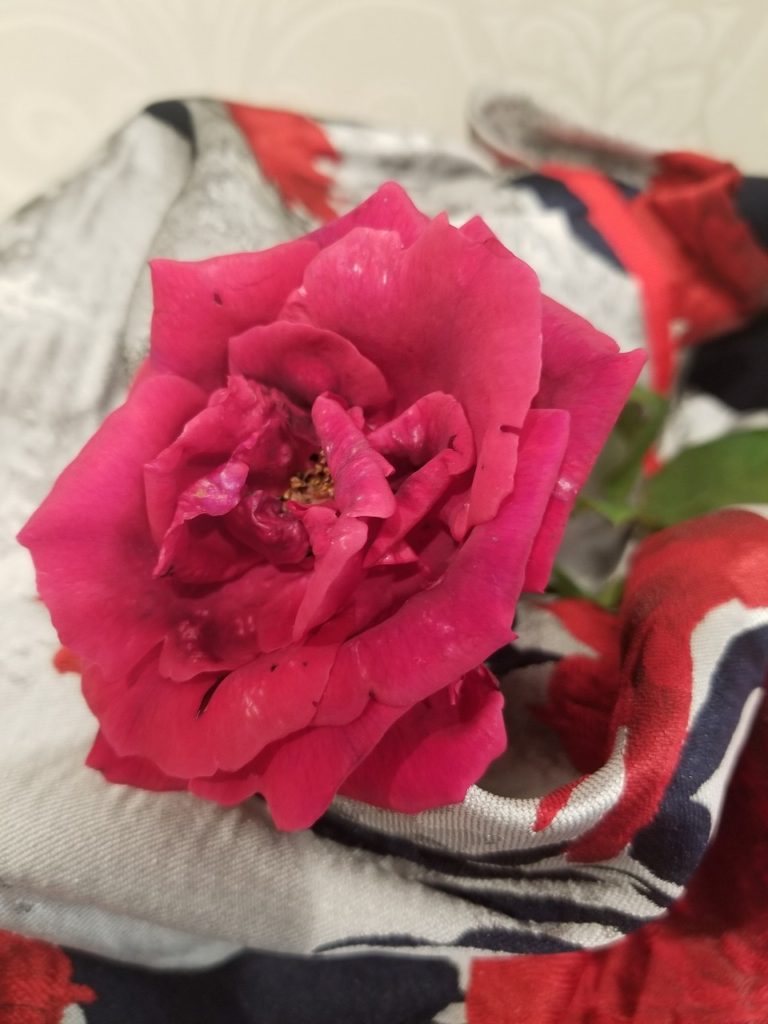 このコはクライミングなので枝分かればかりズンズン伸びて一向に花が咲く気配がありませんでしたが、気が付くとポツンと一輪、クリムソンレッドも鮮やかな花が咲いていました。